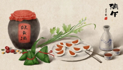 沿江的百姓听说了这件事,因为怕屈原的身体被江里的鱼虾吃掉,于是纷纷划着小舟前去打捞。一位老医师却拿来一坛雄黄酒倒进了江里。他说,这是为了驱赶蛟龙水怪,以免伤害了屈原的身体。看到老医师这么做,百姓们也纷纷将米粮投入到江中,希望鱼虾吃饱了米粮,就不会再伤害掉屈原的身体了。后来为怕饭团为蛟龙所食,人们想出用楝树叶包饭,外缠彩丝,发展成粽子。以后,在每年的五月初五,这些做法就慢慢的变成了今天端午节的赛龙舟、喝雄黄酒和吃粽子等风俗,以此来纪念伟大的爱国诗人屈原。