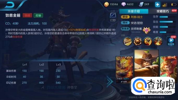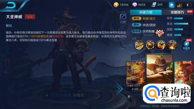 先了解一下孙悟空这个英雄的被动。每次释放完技能之后都会加强下一次普通攻击,增加普攻范围并且造成370+100%的物理伤害,天生带有20%的暴击几率,但初始暴击效果只有150%基础伤害。