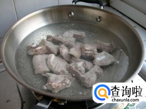 然后,放入锅中,加入适量清水、盐。清水应淹没排骨,然后,开大火进行煮。