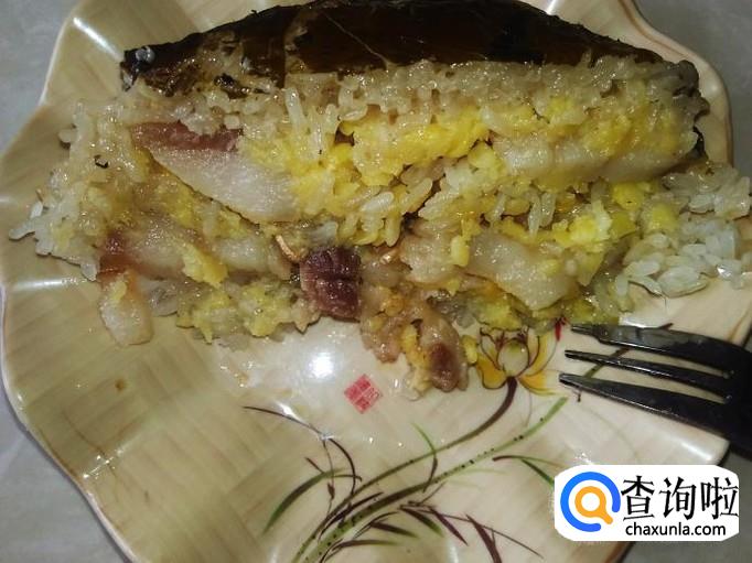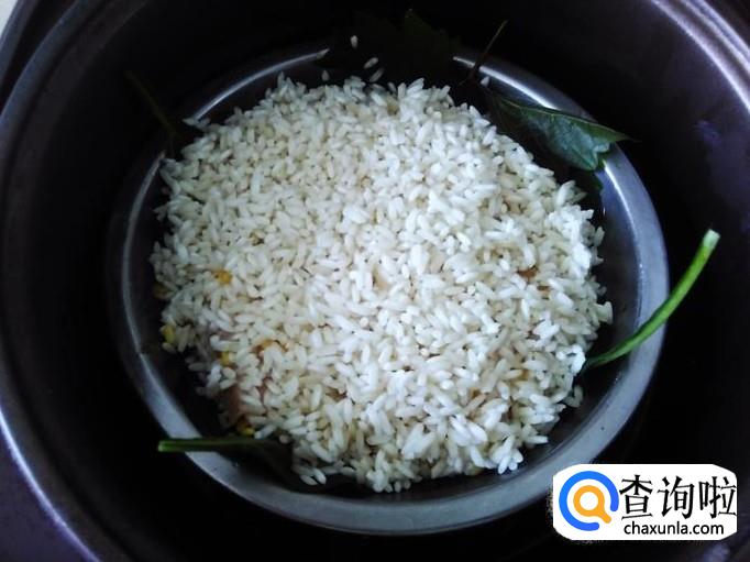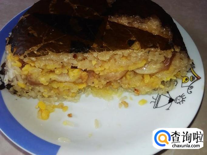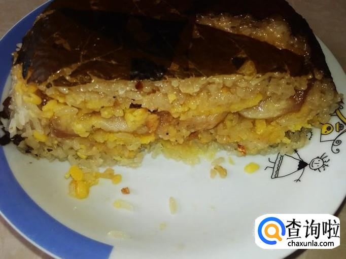 铺猪肉,再铺绿豆最后铺糯米就完成了。