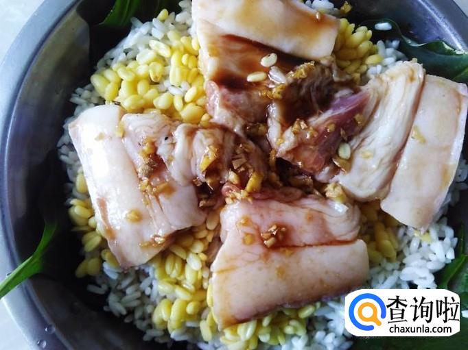 糯米300克,绿豆100克,半肥瘦猪肉200克,姜蓉适量,1勺生抽,1勺料酒。