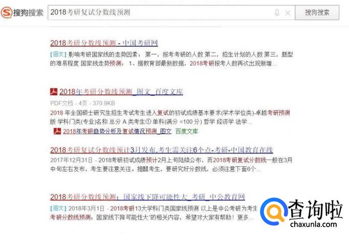 最后,如果对自己的考研分数把握不大,可以使用搜索引擎搜索“2018年考研复试分数线预测”关键字,然后查看各大网站预估的考研复试分数线,然后参考自己的考试分数进行估测。