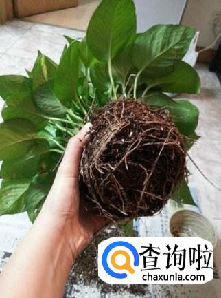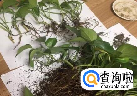 把绿萝的茎部整理好,轻轻抓在手中,另一手执盆。轻轻拔出所有的绿萝。