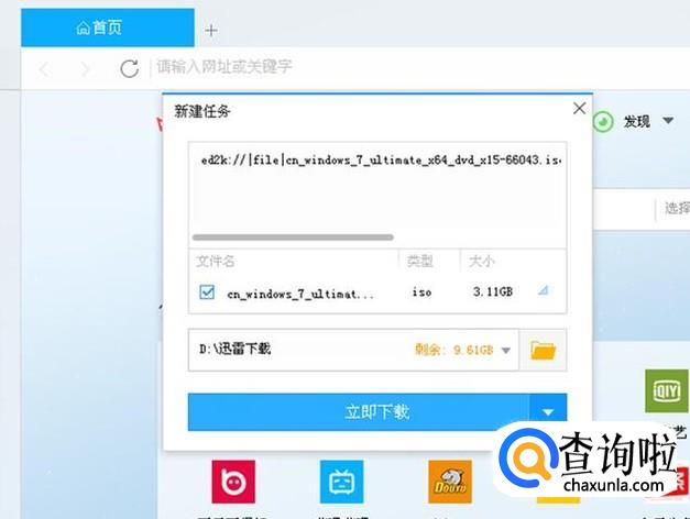 然后打开电脑上的迅雷,会自动嗅探到这个下载链接,直接给你一个下载对话框,设置好保存路径,点“立即下载”。