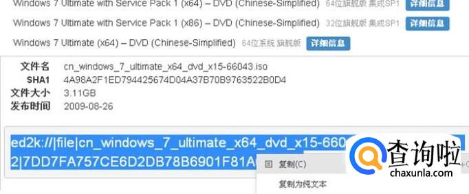 在显示的信息框里往下拉,然后把下边的那个迅雷下载链接选中,右键单击点“复制”。