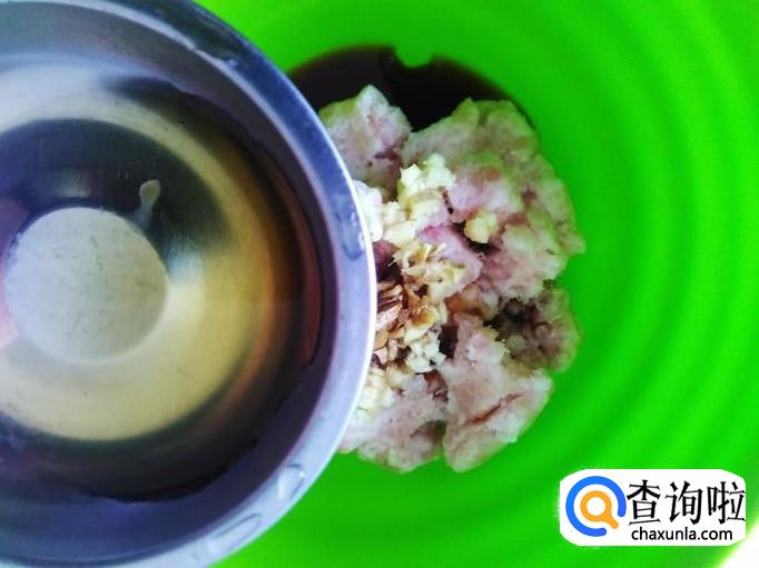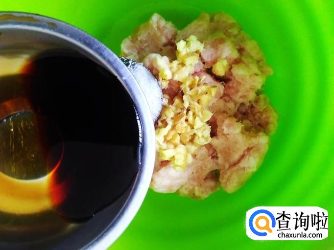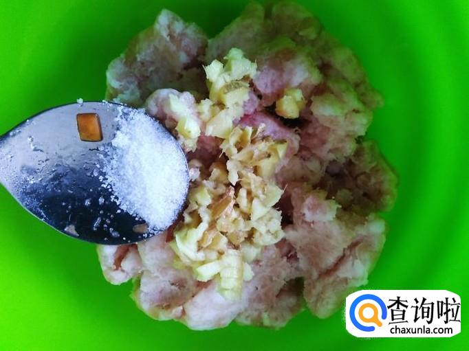肉饼里加适量的盐、姜蓉。