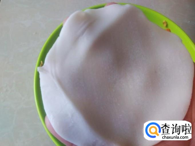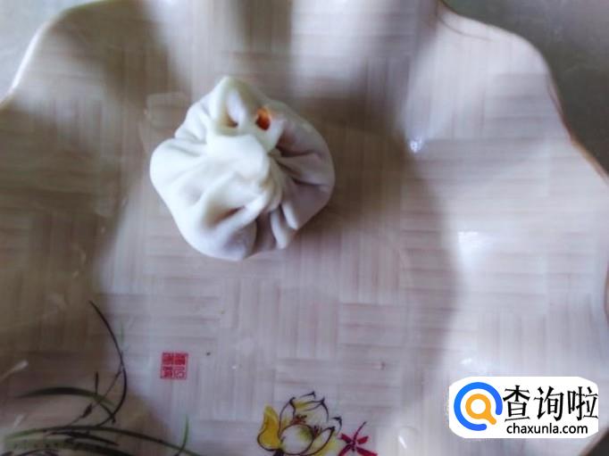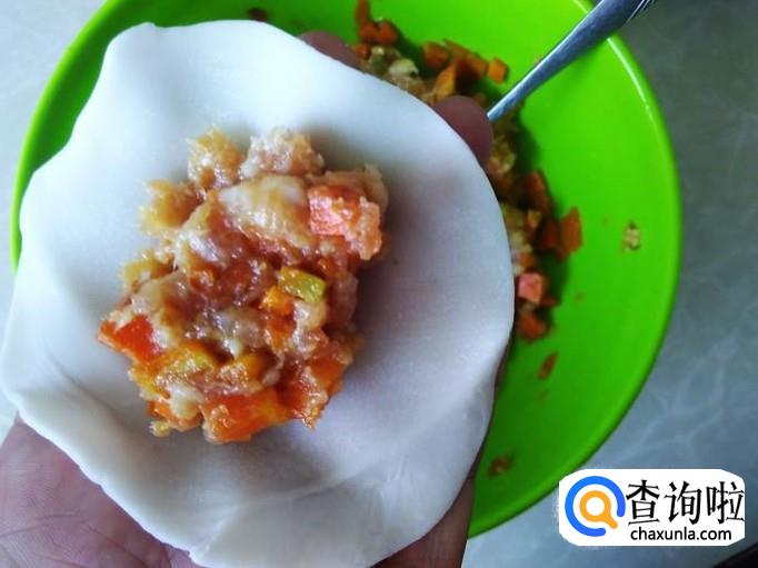 拿一片饺子皮放在手心。
