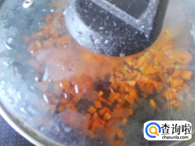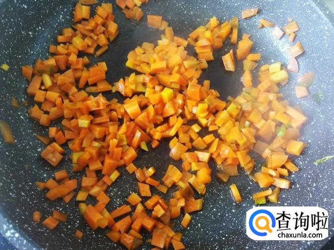 红萝卜丁下锅,加适量的盐翻炒一下。