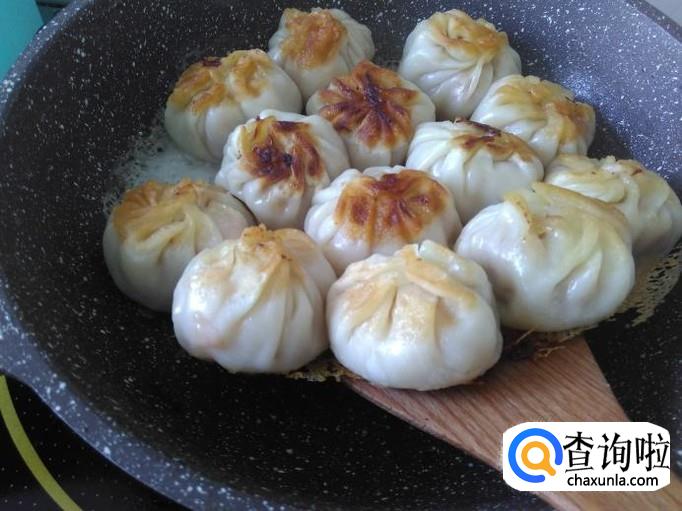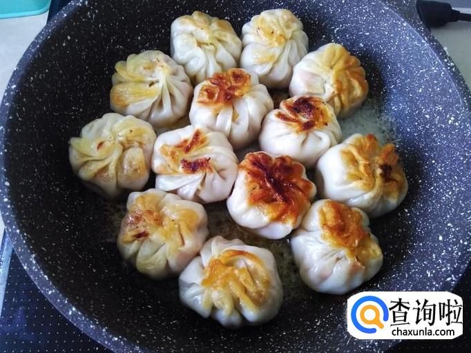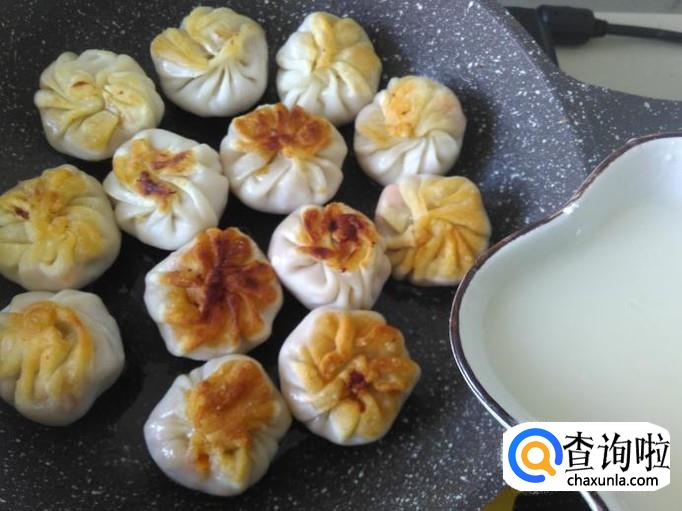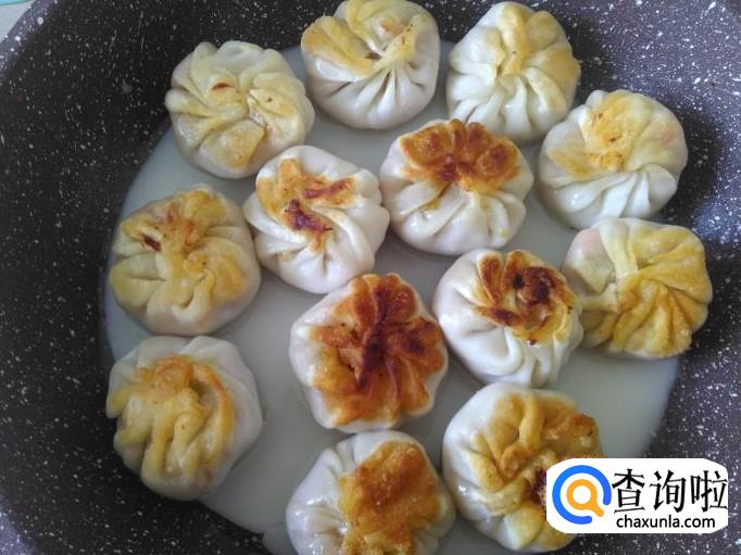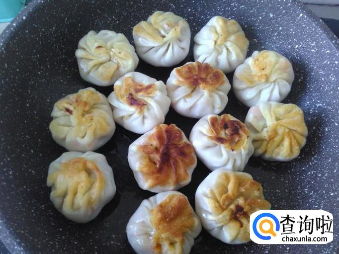 煎3分钟左右,把饺子翻转过来。