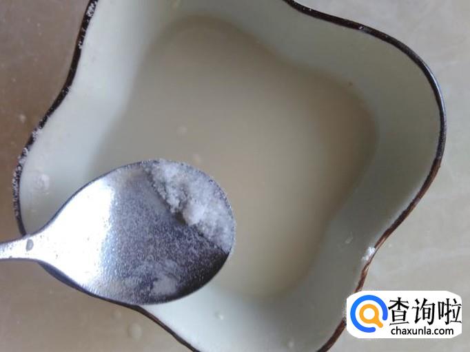 用1小勺生粉,加小半碗水,加适量的盐搅拌均匀备用。