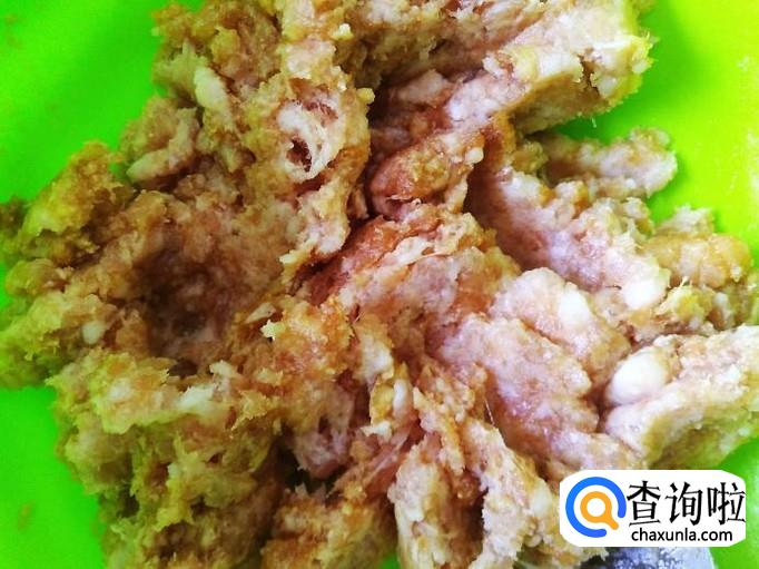 铲到盘里和腌制好的肉末搅拌均匀。