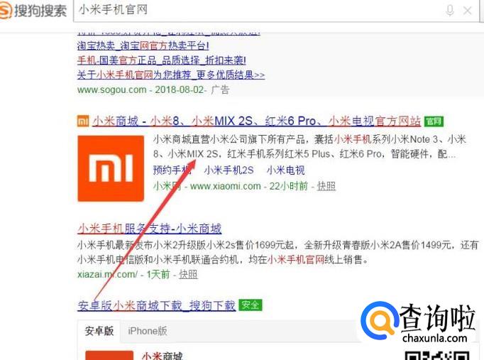 首先用搜狗浏览器找到小米手机的官方网站,如下图