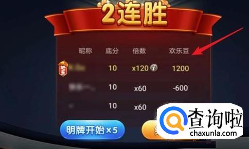 当我们赢了后,就会赢得欢乐豆了,这就是游戏中的分数。赢多少就看当局有没有翻倍,有没有出炸等等。