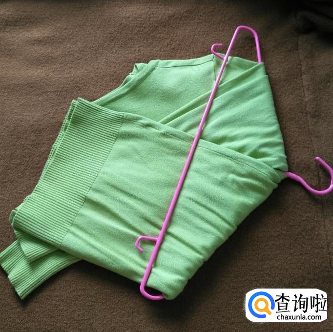 把衣架两端放在衣服肩膀和衣服中间位置处,像下图这样放好。