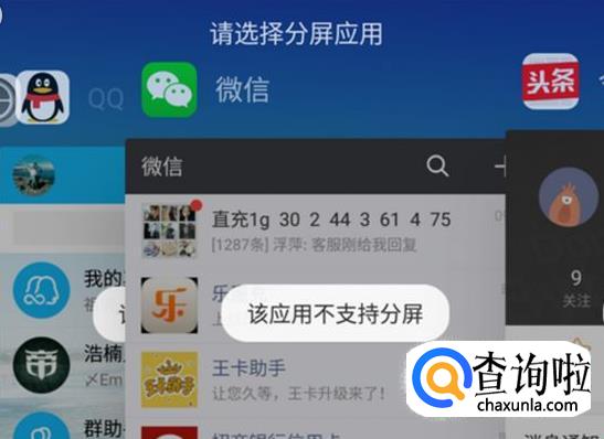 当然也是有很多应用是不支持分屏的,如果是不支持分屏的软件,是会有以下相关显示的。