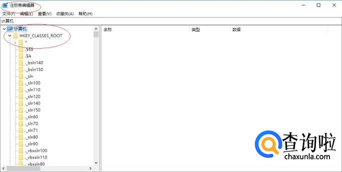 点击"HKEY_CLASSES_ROOT"文件夹,下步将进行排除故障的操作。