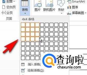 即弹出一个面板,这里有一个个小格子,鼠标放在格子上,格子呈黄色状态,表示,选中它,然后,横向拉,再纵向拉,接着鼠标点击一下。那么,即创建了一个空白表格。