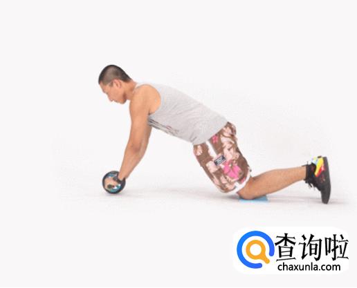 第一种:跪式使用腹肌轮。