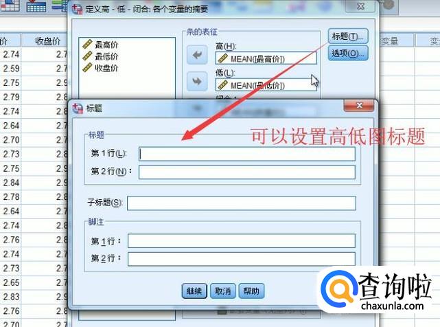 接下来我们可以点击标题按钮,给高低图设置标题名称,如下图所示
