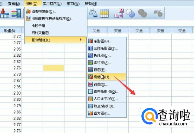 点击顶部的图形菜单,选择旧对话框下面的高低图选项,如下图所示