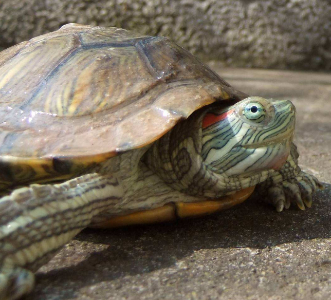 乌龟虽属爬行动物,但它拥有着其它爬行动物所没有的显著特征。龟壳,坚硬而厚实。它不但能保护乌龟的五脏,在面临外界危险时,它还能覆盖住头、四肢和尾巴。这一强大的外形构造,使得乌龟在面临敌害时,不用“疲于奔命”,而只需将身体缩进龟壳里,那些敌人们便“无从下口”了。