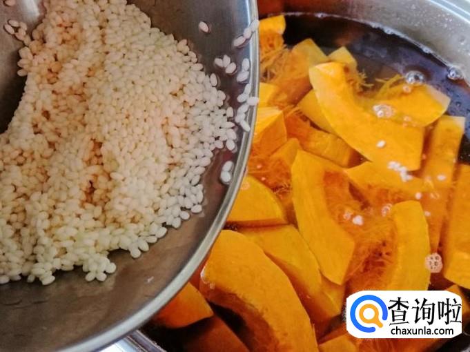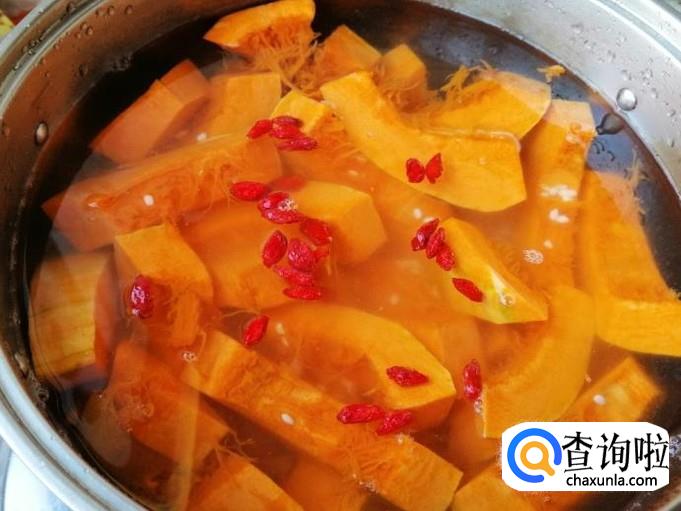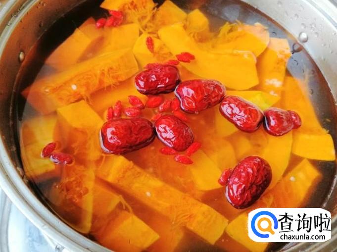 煮锅放水加入备好的南瓜,还有洗好的枸杞和红枣,都放好后等会就开火煮粥,所有食材用量根据自身喜好来放。