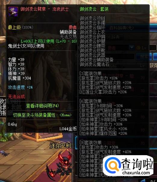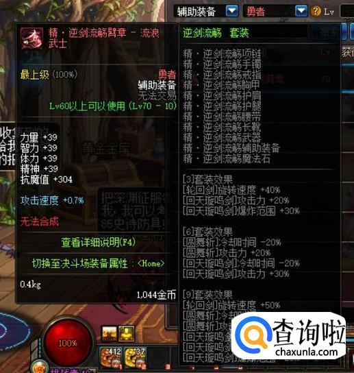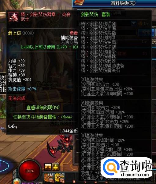 “剑之神域”套装,对技能的提升较为驳杂,对于【啸空十字斩】这个技能的提升还可以,但总的来说性价比很一般。