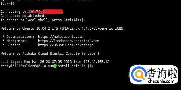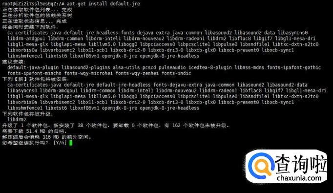 进入到终端界面,使用apt-get install default-jre进行安装,并输入y,按下回车。