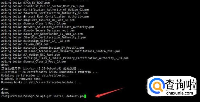 安装好jre之后开始安装jdk,输入apt-get install default-jdk命令,回车,Y,回车,等待安装完成
