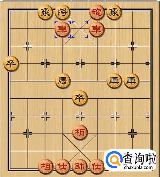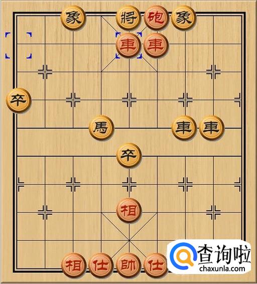红方先行,红方车九平五,红方左路车走到中路,在红方右路车的协同作战下,红车将军。如图所示。