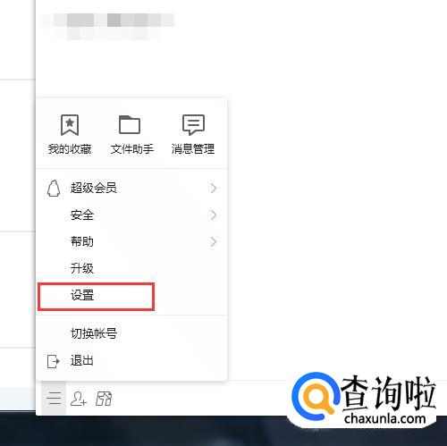 在QQ主页面左下角,点击三条横线的菜单符号,选择【设置】;