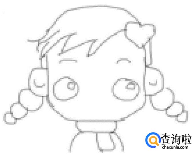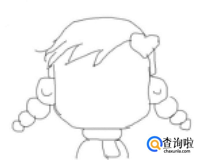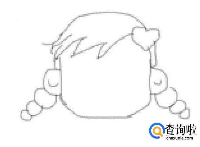 再在耳朵的基础上再画出小女孩的两只小辫子,如图所示: