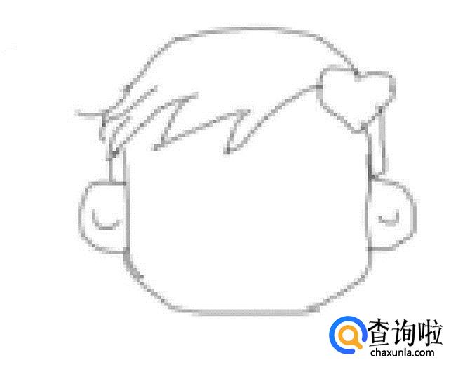 在头发的下面画出小女孩的面部,然后在面部上画出小女孩的两只耳朵,如图所示: