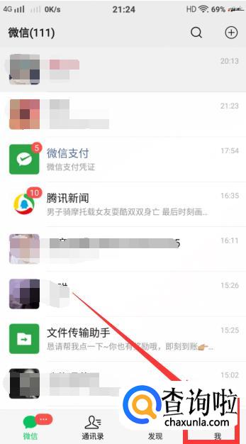 进入【微信】后,点击页面下方的【我】并进入。