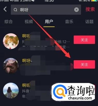 在搜索结果页面,点击“关注”即可添加好友,如图所示。