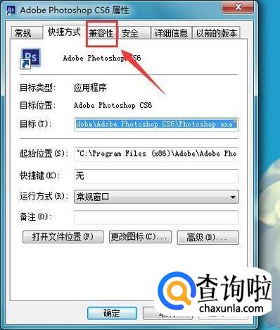 点击属性选项在弹出的对话框内找到兼容性选项,如图所示: