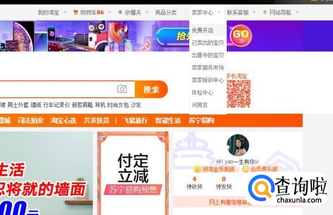 进入后,点击“卖家中心”,选择免费开店进入。