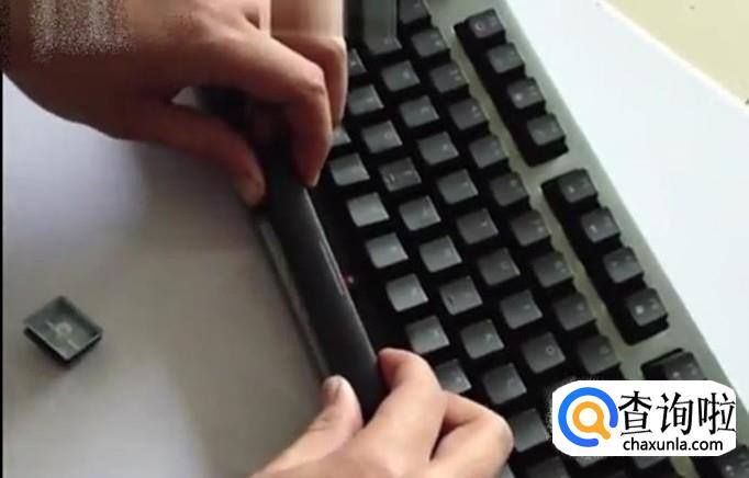 下边有平衡杆的,我们先拆除旁边的键 ,然后用手指抵住两侧往上抬