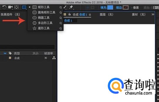 合成创建完成之后进入编辑界面,在上方选择一个形状工具。