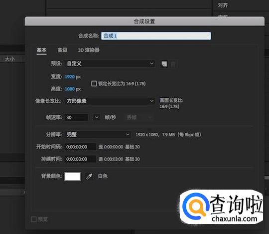 打开电脑中的AE软件,新建一个合成,大小随意,帧速率30f就行了,持续时间也不要太长,快捷键是CTRL+n。