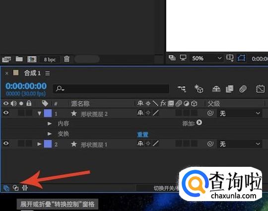 接着就是遮罩功能设置了,如果你的图层面板中没有遮罩选项的话,点击下方“展开或折叠转换控制窗格”