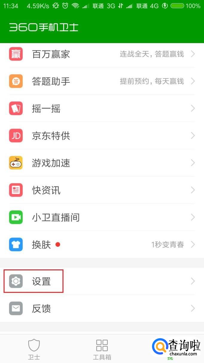 接下来,在设置页面中,点击页面底部“设置”菜单选项。