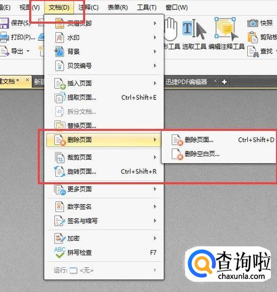 在修改文件的时候,使用PDF编辑软件进行编辑修改,点击菜单栏中的文档,然后选择文档中的删除页面,在删除页面中选择删除页面选项。