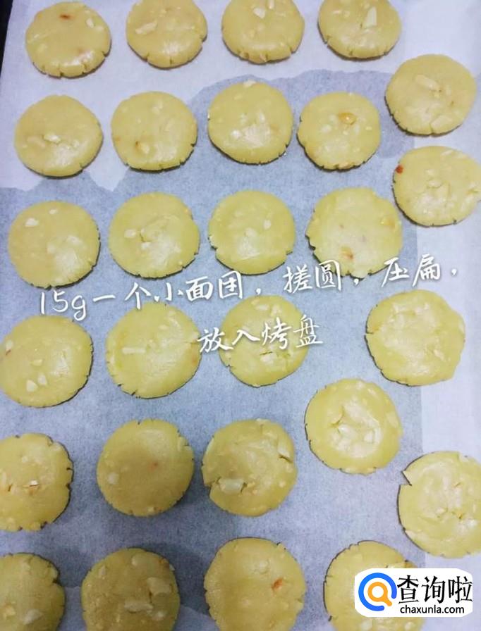 然后分成15克一个的小面团搓圆,压扁放入烤箱,如下图所示。