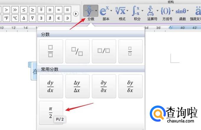 点击后,就可以在工具栏上选择数学公式了。
