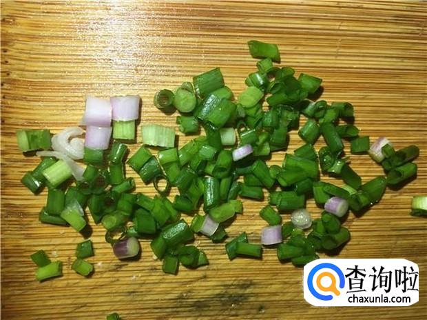 蒜头用刀子拍扁,去掉蒜衣;香葱清洗干净,切成葱末。