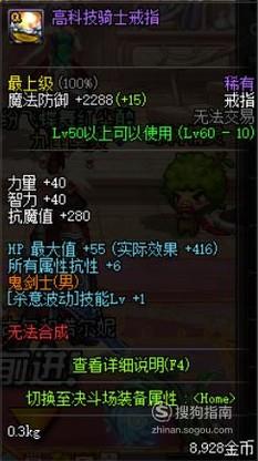 戒指方面可以选择60级稀有装备高科技骑士戒指,对【杀意波动】的技能等级也有1级的加成。