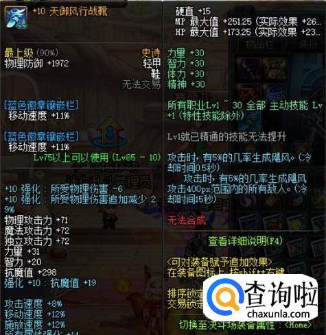 头肩部位可以选择85SS装备魔战无双肩甲,附加效果:所有职业LV30~45全部技能LV+2(特性技能除外)。