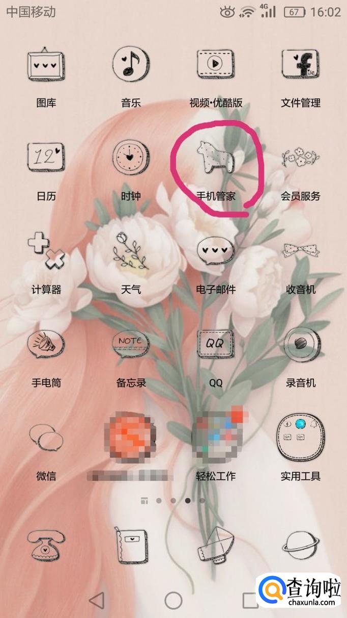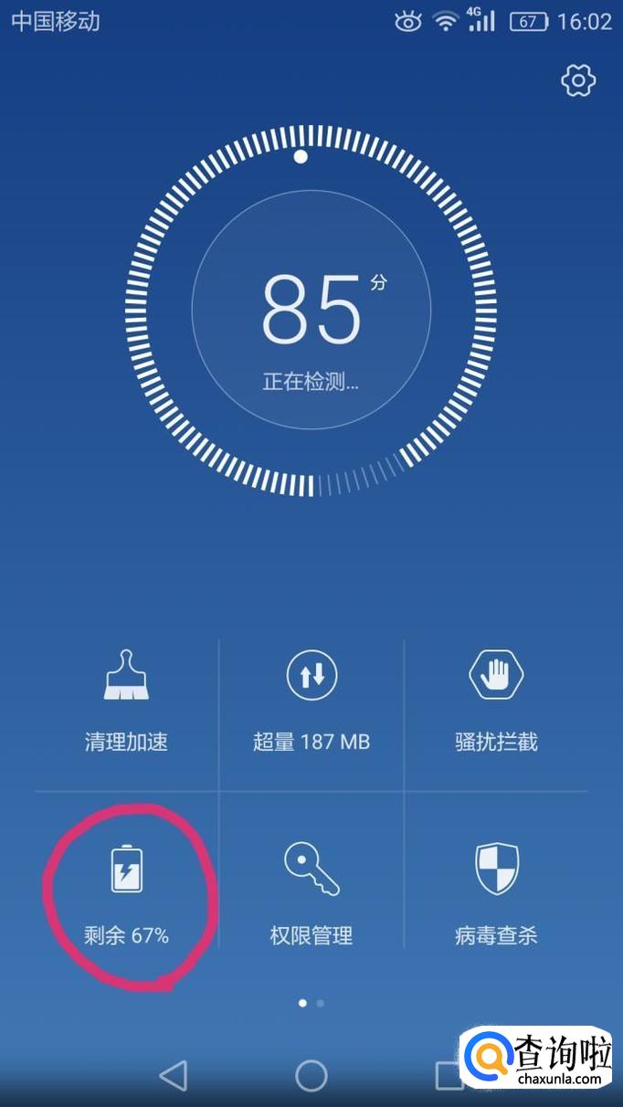 进入手机管家主页面后,在页面左下方有个电池图标,点击。