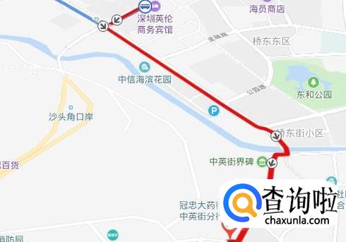 抵达三家店公交车站下车,沿着沙盐路直走140米左右,接着左转到沙深路,直走600米左右,右转即到达中英街。